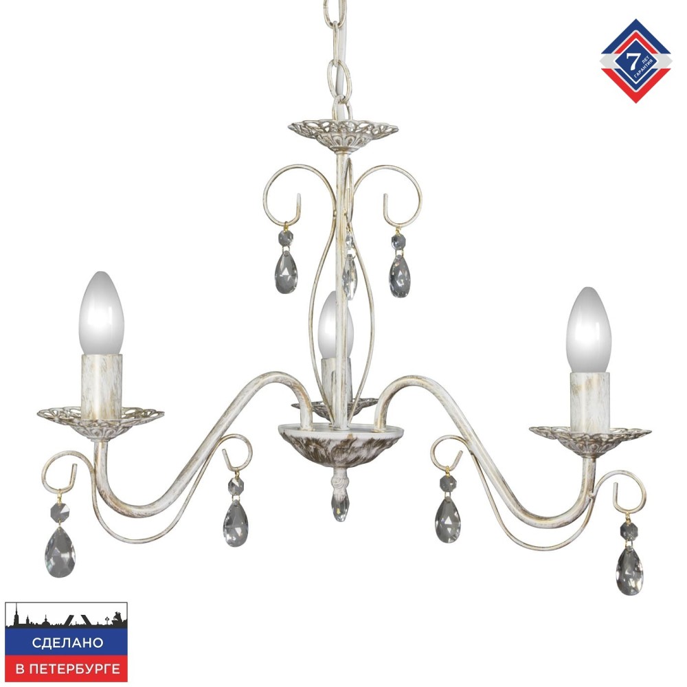 Дополнительные ключевые слова для SEO: люстра классическая, люстра с хрусталем, люстра подвесная, светильник классический, светильник с хрусталем, люстра неоклассика, люстра прованс, купить люстру, светильник купить, освещение, декоративный светильник, люстра для гостиной, светильник для спальни, люстра для столовой, купить светильник в Москве, купить люстру в Санкт-Петербурге, светильники Петрасвет, люстра Петрасвет, классический светильник, современный светильник, светильник с патиной золота, элегантный светильник, роскошный светильник, свет для дома, интерьер, дизайн интерьера, освещение интерьера. Люстра подвесная 3 лампы цепная свечи 3 Аврора российского производства ПЕТРАСВЕТ S1153-3 с хрустальными подвесками, цепь можно укоротить до 1 звена на 17 см, стиль - классика свечи, арматура - металл, цвет светильника- белый с патиной золота, размеры светильника (LxWxH) - 52x52x68, вес - 1,5 кг, Люстра подвесная 3 лампы и для натяжных потолков и освещение 9-15 м2 помещения в зависимости от мощности лампочек Е14, Люстра подвесная 3 лампы цепная 3 рожковая подходит для освещения комнат, кабинета, гостиной, спальни, столовой, детской, кухни, Заводская гарантия 7 лет, Люстра просто собирается по инструкции, Люстры пяти рожковые произведены и проверены на производстве, плотно упакован в коробке из тройного гофра картона, Лампочки светодиодные LED подбираются по следующим параметрам: для яркого освещения - 3 Вт на 1 м2 комнаты, для среднего - 2 Вт на 1 м2, В случае боя или не комплекта, мы вышлем Вам новый в день обращения за наш счет, Можно докупить абажур, который крепится на лампочку,