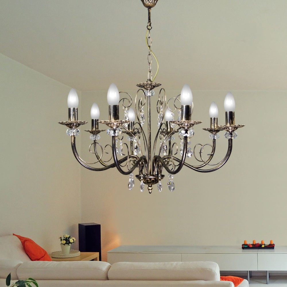 Люстра подвесная 8 ламп S1107-8 – Элегантное освещение для вашего дома Эта роскошная люстра подвесная S1107-8 от бренда ПЕТРАСВЕТ – идеальное решение для создания атмосферы уюта и великолепия в вашем интерьере. Изготовленная в России, она сочетает в себе традиционные элементы классического стиля с современными деталями, что делает ее универсальной для различных помещений. Эта люстра станет настоящим украшением гостиной, столовой, спальни или прихожей, добавив пространству изысканности и неповторимый шарм. Превосходные характеристики и надежность Люстра S1107-8 выполнена из прочного металла, покрытого патиной золота, что придает ей благородный и теплый оттенок. Сочетание черного цвета с золотой патиной создает контраст, который подчеркивает красоту хрустальных элементов. Благодаря своей конструкции, люстра имеет ширину 70 см и высоту 57-74 см, что позволяет ей гармонично вписываться в различные пространства. Ее ширина основания составляет 12 см, обеспечивая устойчивость и стабильность конструкции. Гибкость в выборе источника света Люстра S1107-8 рассчитана на использование различных типов ламп: накаливания, светодиодных или люминисцентных. Это дает вам возможность подобрать оптимальный вариант освещения в соответствии с вашими предпочтениями и потребностями. Использование светодиодных ламп позволит значительно снизить энергопотребление и увеличить срок службы светильника. Роскошные декоративные элементы Одной из главных особенностей люстры S1107-8 являются ее хрустальные подвески и вставки. Эти элегантные детали не только украшают светильник, но и рассеивают свет, создавая мягкое и уютное освещение. Хрусталь добавляет блеск и глубину, превращая люстру в настоящее произведение искусства. Рассеиватель направлен вверх, что позволяет создать эффектное освещение потолка и стен. Технические характеристики и удобство монтажа Бренд: ПЕТРАСВЕТ Страна производства: Россия Материал: Металл Цвет: Черный с патиной золота Тип цоколя: E14 (подходит для большинства ламп) Модель: S1055 Количество ламп: 8 Напряжение: 220 В Срок гарантии: 7 лет – гарантия качества и надежности. Тип монтажа: Подвесной – простая и быстрая установка. Тип крепления: Крюк – обеспечивает надежное крепление к потолку. Размеры коробки: 30 см (В) x 32 см (Ш) x 31 см (Г) – удобство транспортировки и хранения. Площадь освещения: 24-35 м? – оптимальный выбор для помещений средней и большой площади. Световой поток: 6000 лм – яркое и равномерное освещение. Стиль: Классический, неоклассика, прованс – универсальный дизайн, подходящий для различных интерьеров. Преимущества покупки люстры S1107-8 от ПЕТРАСВЕТ: Высокое качество: Производство в России гарантирует использование качественных материалов и соблюдение высоких стандартов. Элегантный дизайн: Сочетание классических элементов и современных деталей создает неповторимый стиль. Надежность: Срок гарантии 7 лет подтверждает долговечность и надежность светильника. Универсальность: Подходит для различных помещений и стилей интерьера. Удобство установки: Простая и быстрая установка благодаря типу крепления. Яркое и равномерное освещение: Световой поток 6000 лм обеспечивает комфортное и функциональное освещение. Широкая цветовая гамма: Патина золота создает теплый и уютный свет, который идеально подходит для создания расслабляющей атмосфе