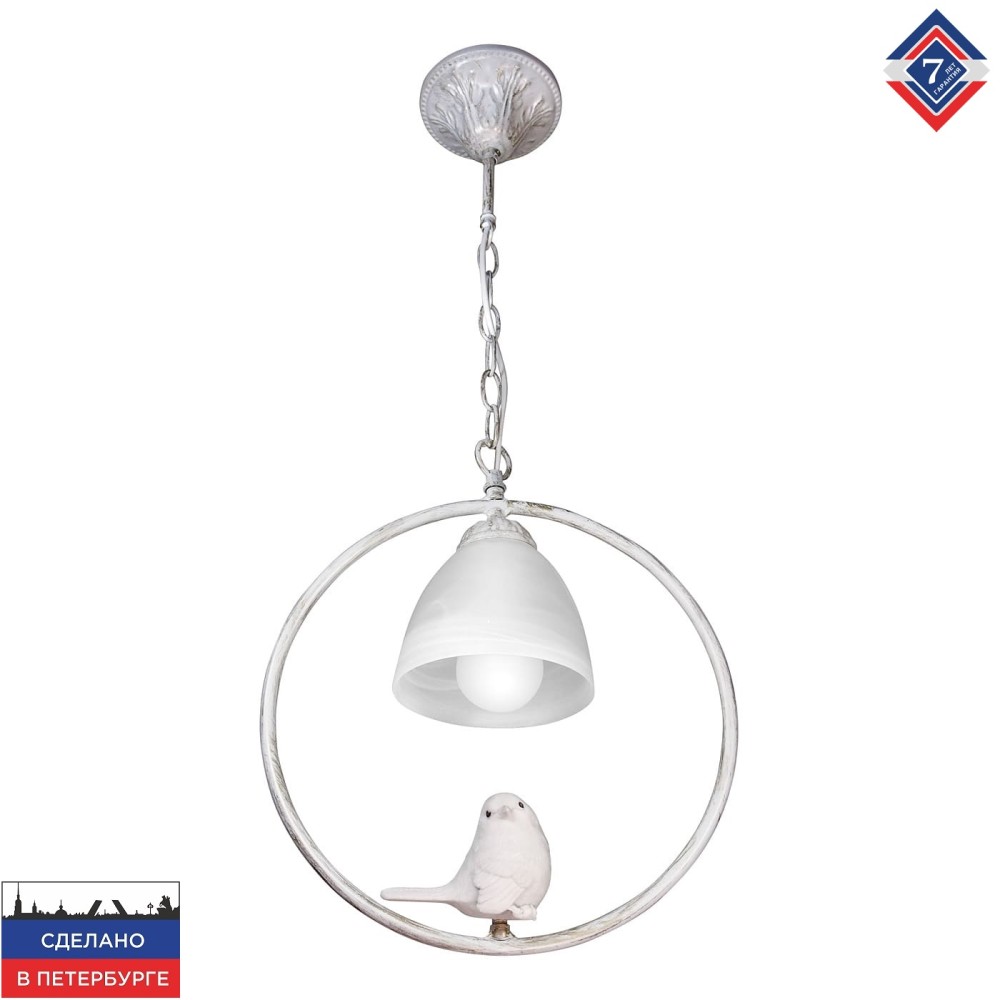 Люстра с птичками в стиле прованс подвесная Е27 плафон стекло российского производства ПЕТРАСВЕТ S1290-1, 1хЕ27 макс, 60Вт, стиль - флористика, арматура - металл, цвет светильника- белый с патиной золота, размеры светильника (LxWxH) - 12x32x73 см цепь можно укоротить до 1 звена на 17 см, вес - 0,7 кг, Расстояние от птички до патрона 14 см, Люстра с птичками в стиле прованс рассчитана и на натяжной потолок и освещение 6-8 м2 помещения в зависимости от мощности лампочек Е27, Все люстры потолочные подвесные подходят и для натяжных и подвесных потолков, Люстра подвесная подходит для освещения комнат, кабинета, гостиной, спальни, столовой, детской, кухни, Заводская гарантия 7 лет, Подвесной светильник плотно уложен в коробке, Подвесная люстра с птичками крепится к потолку стандартным крюком, диаметр основания 12 см, Лампочки светодиодные LED подбираются по следующим параметрам: для яркого освещения - 3 Вт на 1 м2,